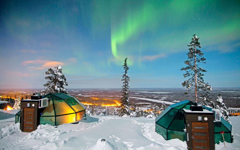> 29 igloos luxueux au toit en verre offrant une vue imprenable sur le ciel lapon.
