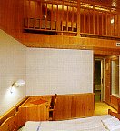 . 2 chalets avec sauna privé, pour 6 personnes. Leur aménagement est identique aux chalets de 4 personnes, avec en plus, deux petites chambres équipées d'un lit simple.