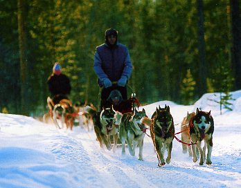 En matinée, départ en bus pour la ferme des huskies. Initiation à la conduite d'un traîneau à chiens, un moyen de transport original et ancestral (sur 2 km). L'idée : se prendre pour un musher le temps d'une courte balade et s'imaginer dans la peau de Nicolas Vanier. Si vous en voulez plus, n'hésitez pas à renouveler l'expérience (voir activités optionnelles). Possibilité de se réchauffer autour du feu et d'une boisson chaude. Retour à l'auberge en bus, pour le déjeuner. Puis, parfaitement encadrés par votre guide, départ pour une escapade à motoneige d'environ 1h30 à 2h, dans une forêt de bouleaux et à travers de grandes étendues sauvages. Enfin vous allez pouvoir tester vos talents de pilote et vos réflexes. Sauna finlandais. Dîner.