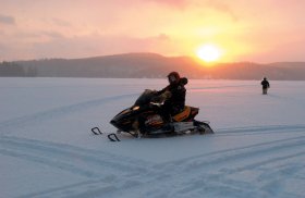 Après les consignes de sécurité, vous partez toute une matinée au guidon de votre motoneige. Visière baissée, vous accélérez et glissez au cœur de la nature assoupie. Sensations garanties. Retour à l'auberge. Déjeuner. Cet après-midi, un autre temps fort vous attend : la joie d'une balade en traîneau à chiens. Rencontre avec les « toutous », préparation des attelages et vous vous transformez, petit à petit, en « musher ». Vous voilà parti pour 2h30, tiré par vos chiens assoiffés de grands espaces, à profiter d'un moment magique. Vous n'êtes pas près d'oublier ça ! Dîner.