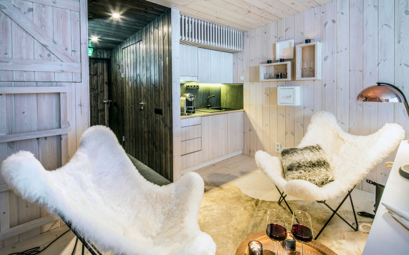 > L’hôtel se compose de 32 suites et 5 chalets offrant des appartements modernes et cosy.